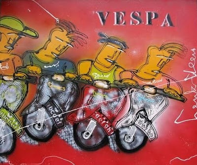 Amsterdamse Kunstschilder Henk Veen is dit keer in de wereld van de scooters gedoken en komt nu met de Vespa. Een bekend merk voor de scooterfan. Een vrolijk schilderij, een echte Henk Veen wat dat betreft.